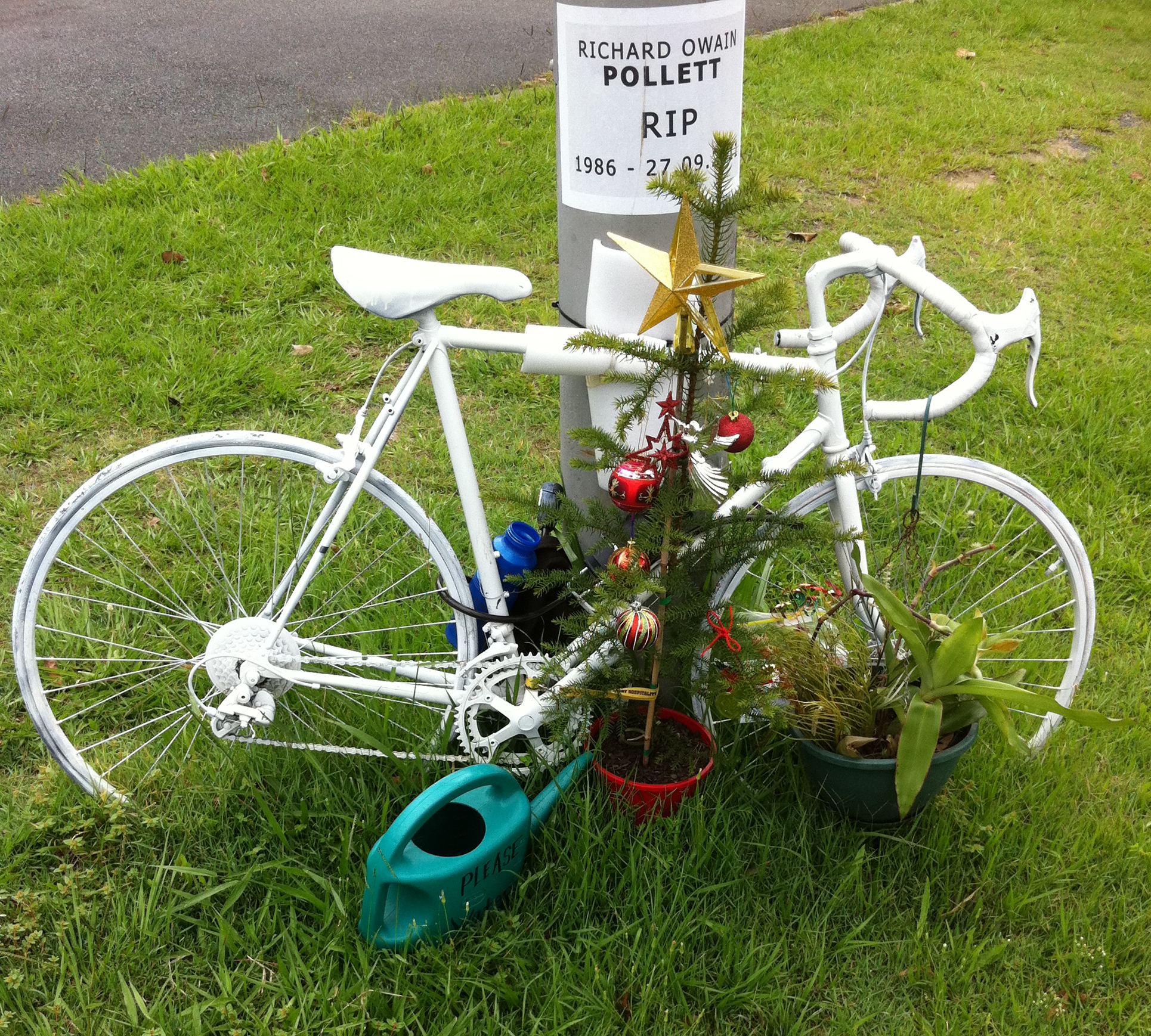 Road side shrine to Richard Pollett, promising violinist who died in a bicycle accident on Brisbane’s Moggill Road.