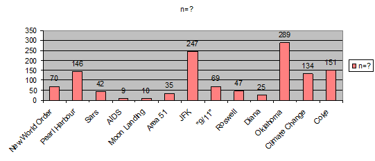 If “conspiracist ideation” has any genuine existence, then it ought to be able to be defined by certain behaviours, or in principle beliefs. So rather than listing what he subjectively determines are conspiracy theories, he should have asked questions about beliefs and behaviours.